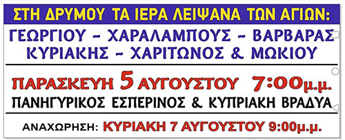 Πανηγυρικός εσπερινός και μουσική βραδιά στη Δρύμου 5/8/2022